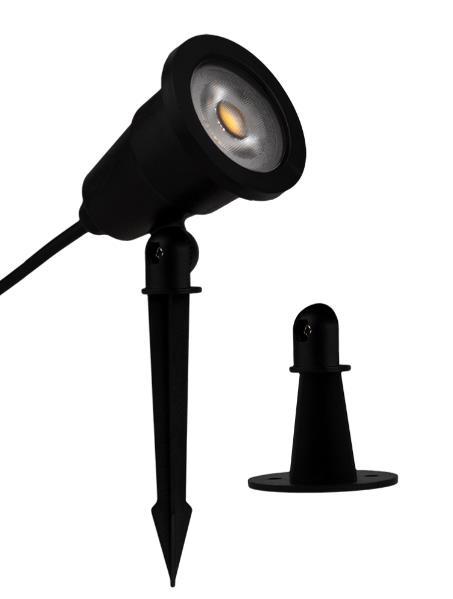 • Possui spot direcionável e acompanha duas bases para ser usado como espeto ou spot.
